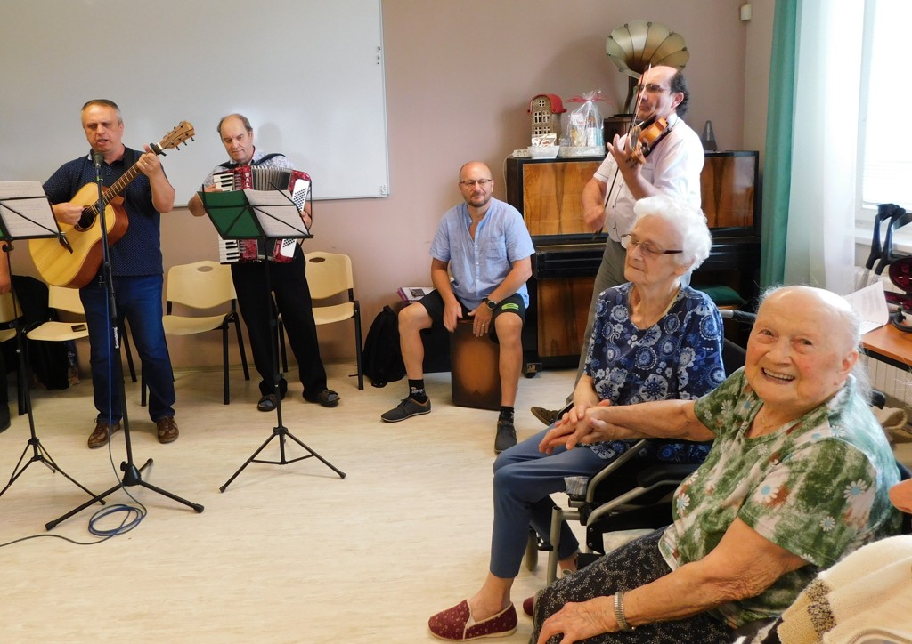Díky naší uživatelce Aničce, jsme objevili novou hudební skupinu – „Beskydští muzikanti“. A to je teda objev! Od první minuty se všichni skvěle bavili. Zpěv se nesl celým domovem. Z celého srdce jim děkujeme.
