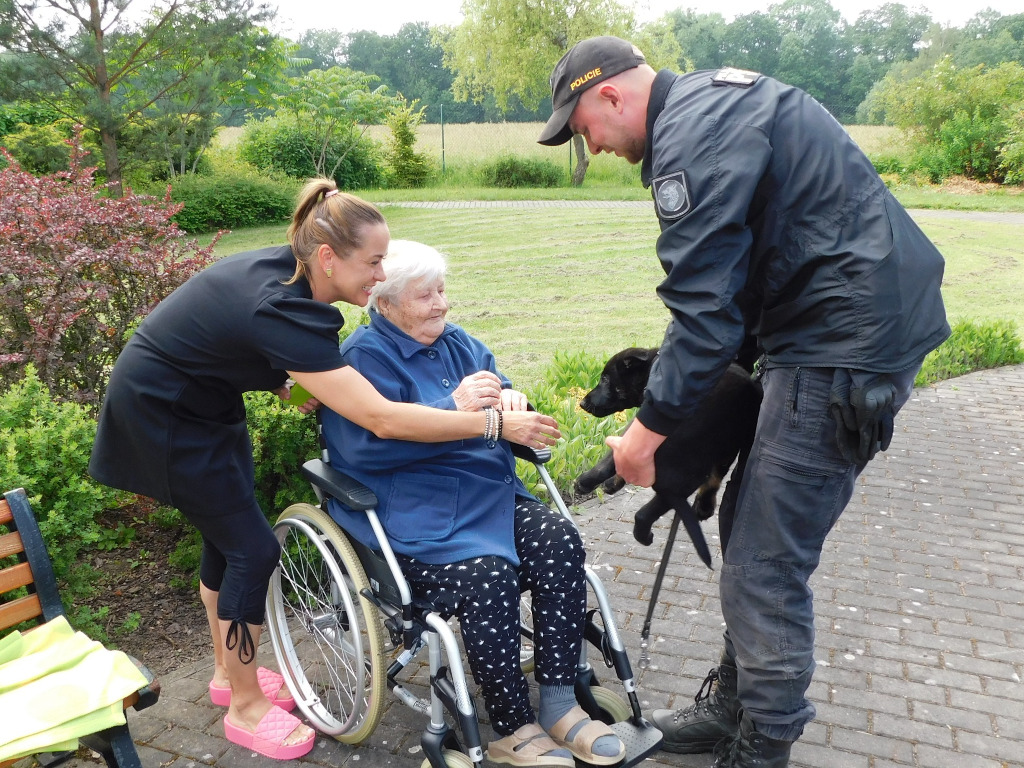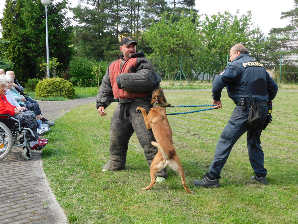 Odpolední středeční čas 29. 5. 2024 byl plný napětí a zážitků. Dojeli k nám na návštěvu Policisté ze Zařízení pro zajištění cizinců Vyšní Lhoty s ukázkou své práce s psovody. Policisté si s uživateli povídali o své práci, probrali několik různých témat. Představili svou výzbroj a výstroj. Dále se představil policejní psovod se služebním psem, který předvedl hlavně praktickou ukázku. Dozvěděli jsme se hodně zajímavých informací ohledně přípravy psů k všestrannému a speciálnímu výcviku.