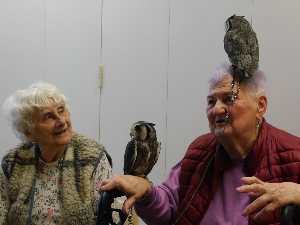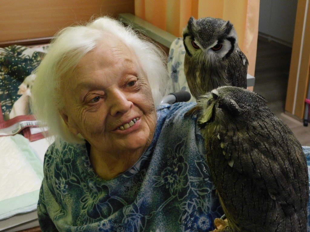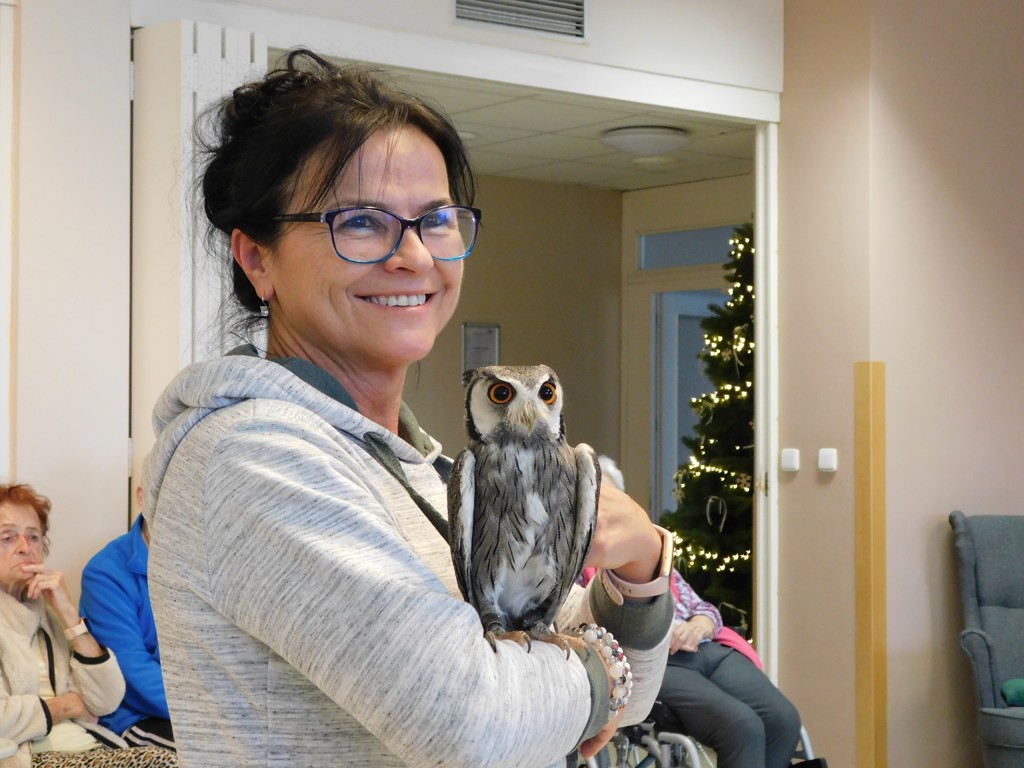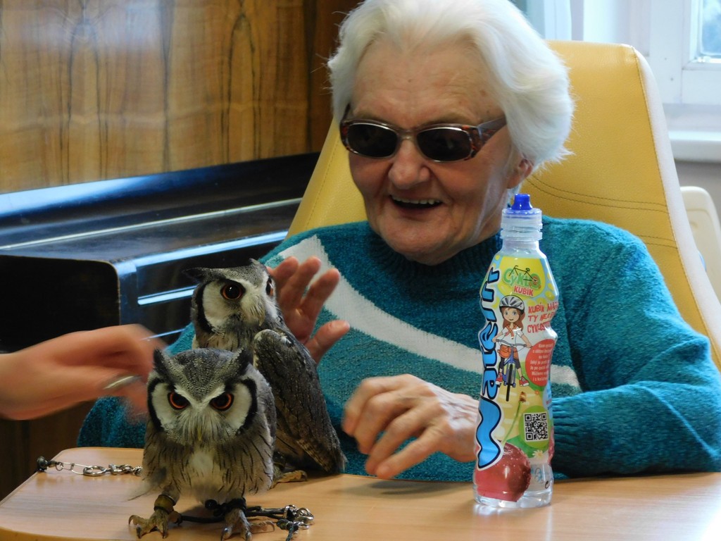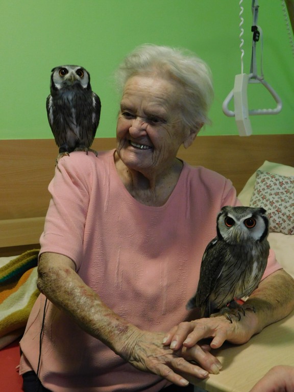 Návštěva chovatelky soviček výrečka bělolícího představovala, v rámci zooterapie, pro uživatele našeho domova skutečný zážitek. Malí opeřenci Ariel a Rozárka přinesli radost a zpestření všedního dne, když si je uživatelé mohli nejen prohlédnout, ale také pohladit či vzít na ruku. Uživatelé měli možnost klást otázky a dozvědět se tak mnoho zajímavostí o tomto jedinečném druhu ptáků, kteří nejsou v naší přírodě k vidění. Společně s chovatelkou jsme navštívili také uživatele, kteří se kvůli zdravotnímu stavu nemohou těchto akcí zúčastňovat, přímo na jejich pokojích. Tento kontakt jim přinesl velkou radost. Návštěva se stala příjemnou, interaktivní a léčivou zkušeností, která rozveselila všechny zúčastněné.