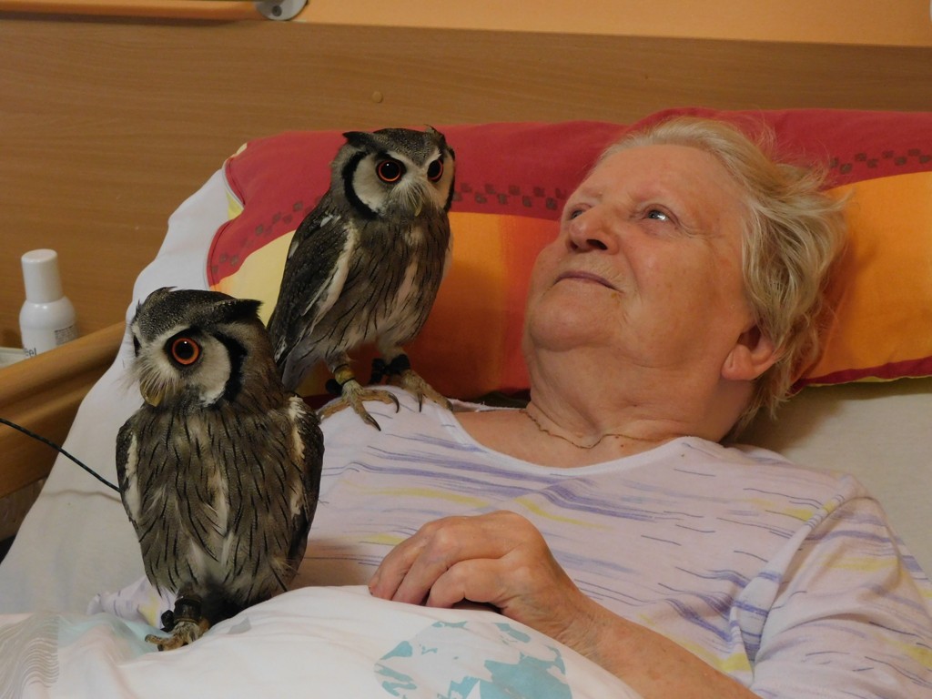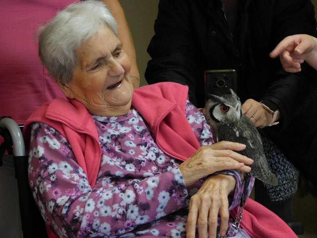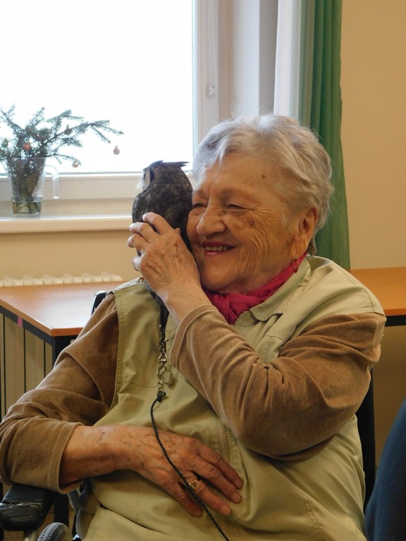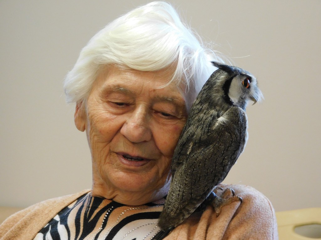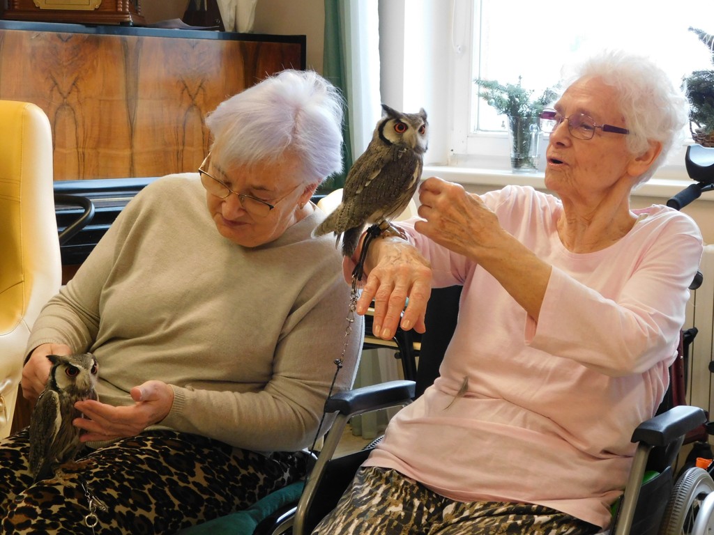 Návštěva chovatelky soviček výrečka bělolícího představovala, v rámci zooterapie, pro uživatele našeho domova skutečný zážitek. Malí opeřenci Ariel a Rozárka přinesli radost a zpestření všedního dne, když si je uživatelé mohli nejen prohlédnout, ale také pohladit či vzít na ruku. Uživatelé měli možnost klást otázky a dozvědět se tak mnoho zajímavostí o tomto jedinečném druhu ptáků, kteří nejsou v naší přírodě k vidění. Společně s chovatelkou jsme navštívili také uživatele, kteří se kvůli zdravotnímu stavu nemohou těchto akcí zúčastňovat, přímo na jejich pokojích. Tento kontakt jim přinesl velkou radost. Návštěva se stala příjemnou, interaktivní a léčivou zkušeností, která rozveselila všechny zúčastněné.
